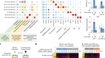 Total RNA was isolated from harvested tissue snap frozen in liquid nitrogen using a modified Trizol extraction method using columns from the RNeasy plant mini kit (QIAGEN)10. cDNA synthesis was performed using oligo(dT)12–18 primers and Superscript III reverse transcriptase (Invitrogen). qRT–PCR was conducted using Fast SYBR Green fluorescent dye (Applied Biosystems) and samples were run on a ViiA 7 Real-Time PCR System (Applied Biosystems) according to manufacturer’s specifications. Data were analysed using the ΔΔCT method64, with EF1α (At1g07920) expression used for normalisation65. Primers used are listed in Supplementary Table 2.