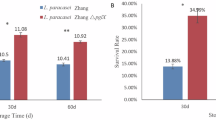 Unlike PTSs of other families, the mannose PTS has an IID protein. Bacterial mannose PTSs have been shown to have broad substrate specificity, such as mannose, glucose, and galactose28. Mannose PTSs in some lactobacilli have previously been characterized. Functionally, the mannose PTSs in Latilactobacillus curvatus have been proven to be glucose and mannose transporters, though no glucose-specific PTS activity was found29. Similarly, a 2-deoxy-D-glucose-resistant mutant of L. paracasei was found to be impaired in the main glucose transport mechanism30, and thus the mannose PTSs in the pglX mutant are likely functioned via a strong alternative catabolite repression mechanism by glucose and mannose of the lactose and ribose assimilation genes30. Our data showed an upregulation of mannose PTSs-coding genes in the pglX mutant, including fructose/mannose PTS IIA component (LCAZH_0402), PTS sugar transporter subunit IIB (LCAZH_0403), PTS sugar transporter subunit IIC (LCAZH_0404), PTS system mannose/fructose/sorbose family transporter subunit IID (LCAZH_0405), and PTS sugar transporter (LCAZH_0406). In addition, it is interesting to note that there was an increase in the expression of the N-acetyl-galactosamine (Aga)-series components of the mannose PTSs in the pglX mutant, namely PTS fructose transporter subunit IIA (LCAZH_0402 and LCAZH_2662), PTS system mannose/fructose/sorbose family transporter subunit IID (LCAZH_2663), PTS sugar transporter subunit IIC (LCAZH_2664), and PTS sugar transporter subunit IIB (LCAZH_2665). In E. coli, Aga-PTSs are responsible for N-acetyl-galactosamine and galactosamine utilization31. These amino sugars are particularly required for bacterial cell wall synthesis. Therefore, the increase in uptake efficiency in these sugars by regulating Aga-PTSs in L. paracasei is likely a protective mechanism activated in the late log phase for cell maintenance.
