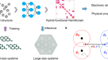 Bilayer graphene: The dataset is also taken from ref. 25. Three hundred structures with 4 × 4 nontwisted supercells are generated by a uniform shift of one of the two vdW layers and inserting random perturbations to atomic positions in the mean time. The perturbations are within 0.1 Å along three cartesian directions. The supercells are constructed from bilayer unit cell structures relaxed with VASP42 using PBE functional with vdW interaction corrected by DFT-D3 method with Becke–Jonson damping46. The optimal interlayer spacing is found to be 3.35 Å. The Hamiltonians of the dataset and twisted structures are all calculated with the OpenMX code using the PBE functional and norm-conserving pseudopotential with C6.0-s2p2d1 PAOs.