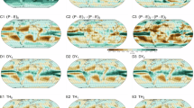 To provide further insight into thermodynamic mechanisms, the moist-adiabatic derivative of saturation specific humidity \({\frac{d{q}_{s}}{dp}|}_{{\theta }^{\ast }}\) is decomposed as the sum of partial derivative of pressure in saturation specific humidity (\(\frac{\partial {q}_{s}}{\partial p}\)) and the product of the gradient with respect to temperature in saturation specific humidity and the lapse rate (\(\frac{\partial {q}_{s}}{\partial T}{\cdot \frac{dT}{dp}|}_{{\theta }^{\ast }}\)), then thermodynamic extreme precipitation Pthe can be estimated as: