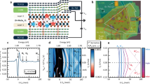 We study the strong coupling regime in a tunable planar microcavity (Fig. 2a) formed by a silver mirror and a planar DBR3. RC scans as a function of the cavity mode detuning Δ = Ecav − Eexc, where Ecav and Eexc are the cavity mode and the corresponding exciton energy, respectively, are shown in Fig. 2b, c. Characteristic anticrossings of the cavity mode with XA and hIX are observed, resulting in lower, middle and upper polariton branches (LPB, MPB, and UPB, respectively). The extracted Rabi splittings are \({\Omega }_{{{{{{{{{\rm{X}}}}}}}}}_{{{{{{{{\rm{A}}}}}}}}}}=38\) meV for XA and ΩhIX = 19 meV for hIX (Supplementary Note S2). Figure 2d shows the RC spectra in the vicinity of the anticrossing with hIX, providing a more detailed view of the formation of the MPB and UPB. The intensity of the polariton peaks is relatively low for the states with a high exciton fraction at positive (negative) cavity detunings for the MPB (UPB). As the Rabi splitting scales as a square root of the oscillator strength, the ratio \({\Omega }_{{{{{{{{{\rm{X}}}}}}}}}_{{{{{{{{\rm{A}}}}}}}}}}/{\Omega }_{{{{{{{{\rm{hIX}}}}}}}}}=2\) is in a good agreement with the RC data for integrated intensities of XA and hIX. From the Rabi splitting ratio we can estimate the tunnelling constant J leading to the B-exciton hybridization. The corresponding coefficient is J = 48 meV (see Supplementary Note S1 for details), matching the density functional theory predictions29. In polarization-resolved cavity scans in an out-of-plane magnetic field (Fig. 2e, f), similarly to hIX behaviour, we observe opposite and larger Zeeman splitting for dipolaritons relative to the intralayer polaritons (see Supplementary Fig. S4). Chiral dipolariton states are observed distinguished by their opposite circular polarization (Fig. 2f).