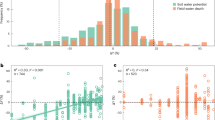 A water quantity and quality model for paddy irrigation and drainage units (WQQM-PIDU) was used to simulate water consumption by rice production and wastewater release. The WQQM-PIDU model was newly developed based on known knowledge of hydrology and nutrient cycling as well as two-year observations in China26. It simulates daily water quantity and water quality variations of a typical irrigation drainage unit (IDU) composed of fields, ditches (and a pond if existed). To represent freshwater irrigation supply from remote reservoirs, freshwater irrigation out of IDUs was simulated to be adequate in normal climate years, but was restricted in dry conditions beyond the supply capability of the irrigation district. First, model simulation was conducted on typical virtual IDUs with four different management styles (totally centralized, partly decentralized 1, partly decentralized 2, and quasi-decentralized) with surveyed IDU structure (Fig. 1c) and area percentages of ditches and ponds for different provinces (Fig. 2b). The results of the totally centralized system dominant currently and the quasi-decentralized one like the traditional system were compared for water sustainability (Fig. 3) and for system resilience (Fig. 4). Then, these IDU-scale results were randomly and proportionally sampled according to the percentages of these four sub-systems occurring in a region to generate provincial and regional results. For current systems, the expert survey data on the percentages of the four sub-systems were used for upscale sampling. For the proposed redesigned systems, 24 scenarios representing different implementation extent were used for upscale sampling. These scenarios represent the three proposed approaches of system redesign–recycling irrigation, pond reconnection, and pond construction–from easy to difficult implementation. The first set of scenarios represents the easily implemented approach that would increase the recycling irrigation percentages from the current status to 100%; the second set of scenarios represents the moderately easy-to-implement approaches that would further conduct pond reconnection to improve the percentage of existing ponds in IDUs to 100%; and the third set of scenarios additionally represent the difficult to implement the approach of pond construction to increase the area percentages of ditches and ponds to 8%, the maximum allowable percentage set by the general well-facilitated farmland construction standards of China (GB/T 30600-2022). The first two sets of scenarios were simulated by increasing the sampling percentages of irrigation drainage styles utilizing more small water bodies (Supplementary Table 3) while the ditch and pond parameters remained the same with the current status (Supplementary Table 4). The third set of scenarios were simulated by further increasing the area percentage of ponds in IDUs (Supplementary Table 5). All simulations were conducted for 30 years (1988–2017) of realistic daily climate data, and the results for analysis used the average value with probability ranges. We choose the WQQM-PIDU model for this study for its capability of representing different irrigation drainage systems, but this model has not been widely used previously. The application of the model in more sites with local data would promote model development.
