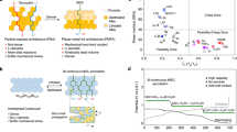 Materials that alloy with lithium at low potentials (“alloy negative electrodes”) are an attractive alternative to lithium metal due to their high-lithium storage capacity and mitigation of filament growth5. Alloy-negative electrodes such as silicon have been investigated for decades for use in Li-ion batteries6,7,8,9, and silicon is currently being incorporated in small fractions to boost the capacity of graphite-based Li-ion battery-negative electrodes10. However, alloy-negative electrodes undergo substantial volumetric and structural changes during reaction with lithium11, which causes excessive solid-electrolyte interphase (SEI) growth and accelerated cell failure within liquid electrolytes because of continual surface dimensional changes12.