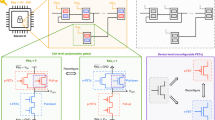 The off-state leakage power consumption was calculated by Pstatic = Vds × Ids. When Vds = 1 V, the Pstatic of the n-type FET was 1.8 × 10−5 nW at Vg = −50 V with a high on/off ratio, although the p-type FET shows a higher Pstatic of 2.7 × 10−4 nW at Vg = 50 V. To verify the necessity of the offset contact geometry, we also measured the asymmetric FET in the top contact and bottom geometries, both of which could not simultaneously achieve the ambipolarity to unipolarity conversion (low leakage current) and a high Ids on/off ratio (Supplementary Fig. 15). Meanwhile, we also replaced the bottom electrode with the Au film, as shown in Supplementary Fig. 16. The bottom-Au-contacted FET showed poor reconfigurability, verifying the WTe2 indeed played an important role in the polarity control. In addition, the effective two-terminal field-effect mobility (μeff) for electron and hole on varied Vds were also calculated by Eq. (7):