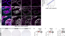 The Panc02 cells were a gift from Dr. Wei Tao (Department of General Surgery, The First Affiliated Hospital, Zhejiang University School of Medicine, Hangzhou, China). The Hepa1-6 cell line (Cat. # SCSP-512) was bought from the National Collection of Authenticated Cell Cultures (Shanghai, China). The KPC cells were derived from 4 to 6-month-old male KrasLSL-G12D; Tp53fl/+; Pdx1-Cre (KPC) mice. The KL cells were derived from 12 to 16-month-old male mice (KrasLSL-G12D; Stk11fl/fl, AAV9-Cre inhaled).The KrasLSL-G12D strain (C57BL/6-Krasem4(LSL-G12D) Smoc, stock number: NM-KI-190003, RRID: IMSR_NM-KI-190003), Tp53fl/fl strain (C57BL/6-Tp53tm2Smoc, stock number: NM-CKO-18005, RRID: IMSR_NM-CKO-18005), Pdx1-Cre strain (C57BL/6JSmoc-Pdx1em(2A-Cre)1Smoc, stock number: NM-KI-225082, RRID: IMSR_ NM-KI-225082), and Stk11fl/fl strain (C57BL/6JSmoc-Stk11tm(flox)1Smoc, stock number: NM-CKO-18014, RRID:IMSR_NM-CKO-18014) were obtained from Shanghai Model Organisms. Briefly, the pancreatic tissue from the KPC mouse was dissociated using the Mouse Tumour Dissociation kit (Miltenyi Biotech, Cat. #30-096-730) according to the manufacturer’s protocols. The CD45−EpCAM+ (BioLegend, Clone: G8.8, Cat. #118208; eBioscience, Cat. #47-0451-82) alive cells were isolated by FACS sorting for long-term culture. Ovalbumin (OVA)- or Renilla luciferase (RLUC)-overexpressing lentiviruses containing the puromycin selection marker was used to generate OVA- (KPC-OVA, Panc02-OVA) or LUC- (KPC-LUC, Panc02-LUC) stablely-expressed pancreatic cancer cells, respectively. The cancer cells were cultured in DMEM medium (Sigma, Cat. #RNBK3090) containing 10% FBS and 10 units/L penicillin–streptomycin at a standard cell incubator (5% CO2). The molecular feature markers of the Panc02 and KPC markers are presented in Supplementary Fig. 23a. In vitro analysis showed that the Cas9 plasmid system efficiently inhibited the expression of PD-L1 on pancreatic cancer cells (Supplementary Fig. 23b).