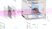 For Figs. 1–6 and S1–10, printing was performed with a VAM printer similar to that previously reported in ref. 3, except that in this work, the projector is outfitted with a 405 nm LED light source. The rotation rate used was 40°/s. The projected pixel pitch in the vial was 0.054 mm (vertical) and 0.037 mm (horizontal). The horizontal pixel pitch is reduced by a factor of \({n}_{{resin}}\approx 1.5\) compared to the vertical pixel pitch due to lensing of the vial. The camera used to capture optical scattering data for polymerization time studies and OST capture is a FLIR Grasshopper USB 3 GS3-U3-23S6M-C running in 8-bit mode.