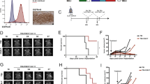 From these studies, we proceeded to further “stress-test” challenge the three TAG72-CAR T-cell lead candidates using an extended 10-day co-culture assay with OV90 tumor cells. TAG72-CAR T cells containing the CD28tm and 4-1BB costimulatory domain displayed the greatest anti-tumor activity (Fig. 1g). Recursive tumor cell killing assays showed two intriguing patterns; both 4-1BB costimulatory domain-containing CARs showed superior antigen-dependent T-cell expansion profiles, whereas the CD28 transmembrane domain-containing CAR T cells achieved better control of tumors over the rechallenge timepoints (Fig. 1h). Collectively, our in vitro studies identified three TAG72-CAR T-cell lead candidates with potent but varying anti-tumor functional profiles, which we selected for further assessment of their in vivo preclinical therapeutic activity.