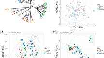 Before the calculation of beta diversity, metabolites were standardized to relative abundance and Bray–Curtis similarity matrices were prepared using the “vegan” package (Version: 2.5-7)56. PERMANOVA (Adonis, transformed data by Bray–Curtis, permutation = 999) was used to determine if beta diversity significantly differed among treatments or plant disease states and principal coordinate analysis (PCA) plots were generated based on Bray–Curtis similarity matrices using the “ggplot2” package57 (Version: 3.3.5). For screening rhizosphere metabolites for the development of prebiotic, the general linear model (GLM) was firstly used to identify differentially expressed metabolites. The R package “mvabund”58 was used to fit the model. The significance threshold was set as adjusted p < 0.05. The p-values were corrected by the step-down resampling procedure for multiple comparisons. Then, metabolites were used to constructed random forest model for seek the metabolites could be well distinguished healthy/diseased. The “randomForest” package was used to develop random forest models. We first used the importance () function to rank individual metabolites on the basis of their contribution to the accuracy of the models. We then used the rfcv() function to perform a tenfold cross-validation that evaluated model performance as a function of the number of discriminant metabolites included in the model. We used similar statistical tools to contrast microbiomes across samples based on the 16S rRNA gene ASV table generated herein. Nonparametric t-tests were used for detection of significant differences in bacterial/ archaeal community diversity/richness based on Shannon diversity, Pielou evenness, and the Chao1 index. Before the calculation of beta diversity, relative abundances were used to standardize the ASV profiles. Bray–Curtis distance matrices were prepared using the “vegan” R package. PERMANOVA (Adonis, transformed data by Bray–Curtis, permutation = 999) was used to test if the beta diversity differed among treatments and principal coordinate analysis (PCoA) plots were generated according to Bray–Curtis similarity matrices created using the R package “ggplot2”57. Network analysis was performed using R package “ggClusterNet”59. To reveal microbial taxa that were more abundant in the metabolite treated samples, linear discriminant analysis (LDA) and effect size (LEfSe) analyses were performed with the “MASS” packages (Version: 7.3-54).