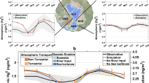 The GAM analysis indicates that the open-water fraction (proxy for oceanic emissions) accounts for ~52% of the GEM variation during the observation period, highlighting the dominant role of oceanic emissions. This result is further supported by the statistical analysis of air-mass back trajectories: the fraction of the 168 h backward trajectory’s transport time in marine area over the total transport time (Sea fraction (Traj)) was larger than 0.9 during most of the observation period, including the periods when GEM peaked (Fig. 4a). A previous study based on GEM data collected at Zeppelin station combined with the Lagrangian particle dispersion model FLEXPART also found that the highest GEM concentrations in July and August were associated with air masses from the marine boundary layer, suggesting the likely contribution of oceanic Hg evasion15. It is generally assumed that the presence of sea-ice inhibits the release of GEM from the ocean to the air42. Here, the partial response curve of the open-water fraction shows two obvious GEM peaks associated with low open-water fractions (approximately 0.2 and 0.5, respectively, Fig. 4b), which may be due to transport from regions with a higher open-water fraction.