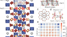 Solid-state batteries are a promising next-generation battery technology because of their potential for improvements in safety and energy density, stemming from the replacement of the conventional flammable organic electrolyte by a dense layer of a solid-state conductor that serves as both the alkali-ion-conducting electrolyte and separator1,2. Numerous efforts have thus been devoted to the discovery of solid-state conductors with high ionic conductivity as well as good chemical and electrochemical stability3,4,5,6,7,8,9. Among these, sodium superionic conductors, or NASICONs for short, are of considerable interest. NASICON materials are a class of polyanionic materials with the general formula NaxM2(AO4)3, where M represents a transition or main group metal and AO4 represents a polyanion10,11. A robust crystalline framework with the rhombohedral (R-3c) symmetry is constructed by corner-sharing metal octahedra and polyanion tetrahedra, as illustrated in Fig. 1a, which creates two distinct Na sites. Therefore, Na ions can migrate from one site to another through two triangular bottlenecks and form a three-dimensional percolating channel for fast ion conduction12. NASICON compounds can also form in a monoclinic symmetry (C2/c) depending on the composition and temperature, which splits the Na2 site into two different sites12. However, the framework skeleton remains the same, and thus, the ion-transport channel is similar. The high ionic conductivity and structural stability of NASICON-type materials are of great interest for building solid-state batteries and other applications such as ion-selective membranes and gas-sensing devices13,14,15,16,17,18.