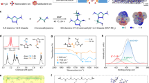 Piperazine (12 g, 0.140 mol) was dissolved in 60 mL DI water. Bis(2-chloroethyl)amine hydrochloride (27.4 g, 0.154 mol) was dissolved in 150 mL DI water and dropped into the piperazine solution. Then CaCO3 (14.8 g, 0.148 mol) was added into the solution, and the mixture was refluxed at 55 °C for 9 h. After removing the white precipitates by filtration, the solution was concentrated by a rotary evaporator and precipitated in ethanol. The product was filtered, washed with ethanol three times, and dried in vacuum (50 °C, 8 h). The QSPIP yield: 62.8%. The chemical structure of QSPIP was confirmed by 1H/13C-NMR (Fig. 1b, c), mass spectrum (Supplementary Fig. 1) and organic elemental analysis (Fig. 1d). 1H NMR (400 MHz, D2O): δ = 3.99 (m, J = 5.5 Hz, 1H), 3.70 (m, 1H) ppm; 13C-NMR (101 MHz, D2O): δ = 55.74, 37.25 ppm; HR-MS(ESI+): m/z: calculated for C8H18N3: 156.1495, [M]+ found: 156.1496.