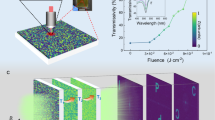 The sample is prepared by using the femtosecond laser writing technique in ref. 58. The domain structure is fabricated in a 5% MgO-doped LiNbO3 crystal. When the near-infrared femtosecond laser is focused into the crystal, the multiphoton absorption produces a localized temperature field, which leads to a strong head-to-head electric field at the laser spot. Meanwhile, the threshold field for LiNbO3 domain inversion significantly decreases because laser heating results in an increased ionic conductivity and therefore a reduction in domain wall pinning. When the laser-induced electric field is larger than the threshold field, the domain is poled and the sign of \({\chi }^{(2)}\) is inverted. Notably, only half of the laser-induced electric field (i.e., the –z component) is antiparallel to the spontaneous polarization of LiNbO3 crystal, which composes the effective electric field for domain poling. In this work, the femtosecond laser is focused along the –x axis and moves along the +x axis. Therefore, the domain size (about 500 nm in the y–z plane) is half of the laser spot size (about 1 μm). Generally, the length of the negative domain (along the x direction) is set to be the coherence length lc of SH generation to enhance the maximal output SH intensity from a super-pixel. The super-pixel length should be the multiples of lc for the complete amplitude modulation. It is necessary to avoid spatial overlap between two negative domains. For example, we use a type-0 SH generation configuration (i.e., e + e → e) for the generation of spiral line (Fig. 2). The lengths of the negative domain and super-pixel are lc = 1.7 μm and 5lc = 8.5 μm, respectively. It should be noted that we add a blazing grating structure into the nonlinear hologram to avoid the background SH waves.