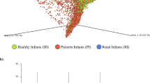 Among the strongest predictors of high-SD in children were Enterobacter nimipressuralis (RF MDA = 5.94%, LEfSe LDA effect size=3.4, LEfSe Kruskal-Wallis FDR-corrected P = 2.3 × 10−6; only detected in one low-SD child) and Klebsiella pneumoniae (RF MDA = 3.09%, LEfSe LDA effect size=3.6, LEfSe Kruskal-Wallis FDR-corrected P = 9.9 × 10−5), both proinflammatory lipopolysaccharide-expressing Proteobacteria61. The strongest predictor of children with low-SD was B. infantis, a species frequently used as a probiotic to diminish inflammation and associated with breastfeeding62. B. infantis represented an average of 28.3% of the GM in low-SD infants, but only 5.2% in high-SD infants (RF MDA = 5.06%, LEfSe LDA effect size=5.1, LEfSe Kruskal-Wallis FDR-corrected P = 0.01; Supplementary Fig. 7). In healthy term infants, low abundance of Bifidobacteriaceae has been linked with systemic inflammation and immune dysregulation early in life63, development of autoimmunity and early-onset type 1 diabetes64, as well as neurodevelopment impairment in preterm infants65. The microbial differences found in our infants are partly related to variation in breast milk exposure, which is diminished in infants living in high SD/PS (Figs. 2b, c). Beyond breast milk, other lifestyle differences have also been shown to have important impacts on early life GM assembly that persist, intergenerationally and well beyond infancy66. This highlights the biologic conversion of social disadvantage, in this case linked to breast milk feeding, with the GM and subsequent potential impact on long term health outcomes.