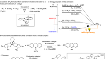 The fixation of molecular nitrogen gas (N2) is of great importance for the industrial production of nitrogen–containing fertilizers but also for natural nitrogen chemistry in general1. The current method depends upon the Haber-Bosch (H–B) process, which operates at elevated temperatures (400–500 °C) and pressures (100–200 bar). It consumes 1–2% of global annual energy and utilizes methane-derived hydrogen, which results in the emission of more than 300 million tons of CO2 per year2,3 (about 1.5% of the total). In the near future, renewable electricity, such as solar and wind, but especially solar radiation and heat may become cheap alternatives. However, energy–intensive H–B plants requiring continuous operation with an uninterrupted energy supply cannot handle the intermittency and decentralized character of renewable energy sources4.