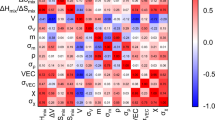 To facilitate the design of stable solid solution HECs, several descriptors have been proposed in recent years14. For instance, entropy forming ability (EFA) from the first principles has been proposed to address the probability of the formation of single-phase HECs15. It has been verified through experiments that compositions with EFA of larger than 50 (eV/atom)−1 can form single-phase HECs16. Also, other parameters such as valence electron concentration (VEC 8.0 ~ 8.6), average size difference (δa ≤ 5.2%), enthalpy of formation (ΔHmix −15 ~ 5 kJ mol−1) have been used for predicting the formation of solid solution HECs16,17,18,19,20,21. Apart from configuration entropy, recent theoretical studies suggest that the vibrational contributions are also important for the phase stability of solid solution HECs22.