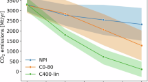All scenarios lead to net-zero emissions for the combined methane and CO2 emissions (Fig. 4). However, the distribution between methane and CO2 emissions varies, especially for 2030 and 2040. While methane emissions in 2030 follow the expected trend with the BAT scenario having the lowest methane emissions, followed by the HP and CEF scenarios, the differences in methane emissions in 2040 narrow down and methane emissions of HP exceed CEF in 2050. The change of position between the HP and CEF scenarios in 2050 is due to the significant reduction in natural gas use in the CEF scenario in 2050, corresponding to 50% of the natural gas used in the HP scenario. Yet, both the HP and CEF scenarios have significantly larger methane emissions despite the lower natural gas primary energy demand, highlighting the importance of methane emissions’ abatement. Net removal of CO2 from the atmosphere is required in 2050 in all scenarios to offset unabated methane emissions along the natural gas value chain. HP and CEF require 50% and 15% more net CO2 removal than the BAT scenario. Removal is achieved through a combination of bioenergy with CCS (BECCS) in the power, industry and hydrogen production sectors and direct air carbon capture and storage (DACCS).