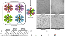 All mouse experiments were carried out in compliance with all pertinent US National Institutes of Health regulations and approval from the Animal Care and Use Committee (ACUC) of the Vaccine Research Center, from the Institutional Animal Care and Use Committee at the University of North Carolina at Chapel Hill to guidelines outlined by the Association for the Assessment and Accreditation of Laboratory Animal Care and the U.S. Department of Agriculture. All infection experiments were done in animal biosafety level 3 (BSL-3) facilities at the University of North Carolina at Chapel Hill. For immunogenicity studies, female BALB/cJ or C57BL/6 mice aged 6–8 weeks (Jackson Laboratory) were used. Per the experimental design schema outlined, mice were inoculated intramuscularly with protein immunogens adjuvanted with SAS in a 1:1 ratio as previously described15 and bled for serological assays. For challenge studies to evaluate CoV_I53_dn5 vaccines, 16- to 20-week-old male and female 288/330+/+ mice21 were immunized, bled, and challenged, as detailed in Fig. 5a. Mice were challenged with 5 × 105 PFU of a mouse-adapted MERS-CoV EMC derivative, mM35c434. On days 3 and 5 post-challenge, lungs were collected from selected mice to assess viral titers and discoloration using previously published methods21,34. Briefly, caudal right lung lobes were harvested for analysis of viral load by plaque assay. Lung lobes were homogenized in 1 mL of PBS and glass beads. Mice in all immunization studies were immunized with 10 μg of total protein unless otherwise stated. For 288/330+/+ mice infected with MERS-CoV, mice were monitored up to 5 days post-challenge and were euthanized, and lungs were collected to investigate lung discoloration and viral burden. UNC mice were housed on a 12-h light/dark cycle (7am–7pm), temperature between 20 and 23 °C, humidity 30–70% (usually in the 50 s). VRC mice were housed on a 12-h light/dark cycle (6am-6pm), temperature between 22 and 25 °C, humidity 30–70% (usually around 35%). The sample size for animal experiments was determined on the basis of criteria set by institutional ACUC. Experiments were neither randomized nor blinded.