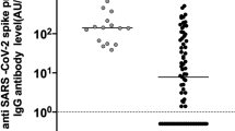 Binding IgG antibodies against the ancestral (D614G) full-length spike protein (anti-spike), its receptor binding domain (anti-RBD) (Identifier: VHH72-hFc1X7), and anti-nucleocapsid antibodies (HC2003; Source: Genscript; Identifier: Cat#A02039) were validated and measured on an automated enzyme-linked immunosorbent assay platform23. Binding antibody levels were reported as relative ratios to a synthetic standard included as a calibration curve on each assay plate. Thresholds for binding antibody seroconversion were determined by aggregating data from negative controls and calculating the mean +3 standard deviations (SD) and were measured at a 1:160 (0.0625 µL/well) dilution. Negative controls were obtained from pre-COVID-19 pandemic sera, blanks, and commercially purified IgG. The threshold for seropositivity was obtained from the mean of the log distributions of the controls which was found to result in a specificity for RBD of 100%, a sensitivity of 89%, while spike had a sensitivity of 99% and specificity of 94%. Seroconversion thresholds were 0.186, 0.19, and 0.164 for anti-RBD, anti-spike, and anti-nucleocapsid antibodies, respectively.