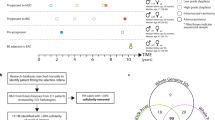 Endoscopic mucosal resection (EMR) is routinely performed in patients with dysplastic BE. In reviewing more than 500 formalin-fixed, paraffin-embedded (FFPE) EMR samples, we identified 14 cases showing unexpected microscopic foci of invasive cancers and one case (patient 1) with an early cancer removed via esophagectomy. All cancers were either intramucosal or T1 and all samples were collected before treatment. Following independent pathologic re-review by two or more pathologists to confirm the diagnoses (“Methods” section), we delineated and performed laser capture microdissection (LCM) to isolate regions corresponding to distinct histopathological states27 (Fig. 1), including non-intestinalized columnar metaplasia (COLME), non-dysplastic BE (NDBE), BE indefinite for dysplasia (IND), BE with low-grade dysplasia (LGD) or high-grade dysplasia (HGD), and intramucosal (IMEAC) or early EAC (Supplementary Fig. 1). We further isolated normal tissue from benign FFPE regions that was used as germline reference.
