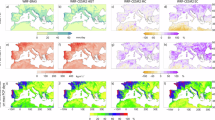 As the Lagrangian model uses dynamically downscaled CESM2 data (WRF-CESM2), we first conducted simulations using ERA5 data in the historical period (see Supplementary Figs. 10–14). Simulations were then conducted using the FLEXPART-WRFv3.3.2 dispersion model69 to study moisture changes, and the experiments were forced with WRF-CESM2 outputs every 6 h (herein FLEX-CESM2). According to the distribution of the atmospheric mass, the simulation domain (covering 100°W to 40°E and from 15°S to 57°N, see Supplementary Fig. 1) was homogeneously divided into 2 million air parcels (or particles), which were subsequently advected forward in time for the entire study period. Finally, to obtain the (E-P) fields for comparison, the moisture sources and sinks for the target regions selected in this study (NATL, MED and IP) were identified and computed (Supplementary Section 1).