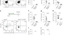 RNA extraction from whole tissue was performed using the RNeasy Mini Kit (QIAGEN, 74106), and cDNA was generated using the High-Capacity cDNA Reverse Transcription Kit (Applied Biosystems, 4368813) in accordance with the manufacturer’s instructions. RNA extraction from sorted cells was performed using the RNA-easy Micro Plus kit (Qiagen), cDNA was generated with the SuperScriptTM IV First-Strand Synthesis System (ThermoFisher) in accordance with the manufacturer’s instructions. Quantitative RT-PCR analysis was performed using the SensiMix SYBR Hi-ROX Kit (Bioline, QT605-20) in duplicates (technical replicates) using the Viia7 Real-Time PCR System (Life Technologies). Samples were exposed to an initial denaturation step of 95 °C/10 min, followed by 40 cycles of amplification (95 °C for 15 s, 60 °C/1 min). 18S or Gapdh were used as house-keeping genes, with fold changes in gene expression being calculated using the 2-ΔΔCT method. Primers used are outlined in Supplementary Table 1.
