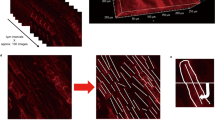 Three-dimensional image reconstruction was conducted to present the spatial architecture and morphology of cell distributions at the microscopic level (around µm) for the whole heart. The method was based on a modified procedure of our previous approach68 to proceed fluorescence images of multiple coronal slices of adult and neonatal murine cardiac tissue. To establish a 3D atlas of whole heart with details of spatial distribution of positive and negative labelled cardiac cells, each two-dimensional (2D) fluorescence image was first pre-processed for registration, segmentation, and enhancement before final fusion for 3D reconstruction of the adult and neonatal hearts. Input: Raw 2D fluorescence images were used after spatial resolution between the two groups were unified (the resolution of the adult mouse cardiac images was downsized as they are about 20-fold of those of the neonate ones). Registration: Registration involves two steps: the contour extraction and the affine transformation. To account for the distinctively dispersed cell spatial distribution in the raw images, the Flood Fill algorithm was used to calculate numerous limited bounded regions, which corresponded to the position of holes. Once the positioning process was completed, a bitwise NOT inverted operation was performed to generate a new matrix, which was then logically computed with the raw image matrix to achieve the hole filling target. Finally, the Sobel operator method was utilized to construct a base-image emphasizing edge, followed which the new edge was then added to the former layer of each image to execute the affine transformation (rotation and translation) process. Contrast Enhancement: By modifying relative parameters gain (γ) and bias (β) in the following equation, we were able to optimize image features and boost colour contrast using a common linear transformation method: gx,y=γfx,y+β. In this equation, fx,y is the input pixel value, gx,y is the processed pixel value, the gain parameter γ is used to increase contrast ratio, and the bias parameter β is used to control brightness.