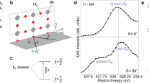 In Fig. 1b, we show the Ru L3 RIXS spectra along the two directions. Multiple peak structures are readily identified. The main feature A is composed of multiple peaks which extend up to ~ 1 eV. These peaks are assigned to spin and orbital excitations within the t2g orbitals. In addition, a weakly-dispersive feature B is identified at ~3 eV (blue circles). As this energy corresponds to the splitting of the transitions to the unoccupied 4d t2g and eg orbitals in the Ru L3 x-ray absorption spectrum (Supplementary Fig. 1a), the feature B is readily assigned to the crystal field transitions to the \({t}_{2g}^{3}{e}_{g}^{1}\) electron configurations. We note here that its intensity is maximal close to the q = (0, 0) point along the two directions.