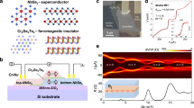 Figure 1c schematically shows the working principle of our superconducting spin valve. A few-layer-thick elongated NbSe2 flake is selected as a charge transporting channel. A wider CrSBr flake is placed on the NbSe2 channel, in such a way that its b-axis is aligned parallel to the NbSe2 flake’s long edge and it covers only a part of the NbSe2 flake. An in-plane magnetic field triggers the AP-to-P transition in CrSBr, which acquires net magnetization and generates out-of-plane stray fields that are localized at the edges of the CrSBr flake. Due to our device geometry, the stray fields penetrate the NbSe2 channel when a magnetic field is applied along the b-axis. Since a superconducting state in NbSe2 is much more sensitive to out-of-plane than in-plane magnetic fields, the externally applied in-plane field does not significantly affect the superconductivity27, while the out-of-plane stray fields efficiently suppress it. This causes a sudden change in the resistance state from zero to a finite value, yielding a sharp superconducting MR response. This effect only occurs in the region of a NbSe2 close to the CrSBr flake edge, where the stray fields are localized (see Fig. 1c). It is important to note that if a magnetic field is applied along the a-axis, the CrSBr also acquires net magnetization, but it generates out-of-plane stray fields far from the NbSe2 channel in our heterostructure, not affecting the superconducting state of the NbSe2 (bottom image in Fig. 1c).