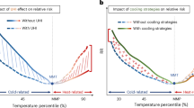 Other factors not explicitly considered in this study include the specific role of high nighttime temperature in mortality risk. This may be especially relevant for heat in urban areas as air temperature UHI is more pronounced during nighttime9, and high nighttime temperatures have been noted to be additionally hazardous to health during heat spells66,67. Exacerbating effects of long heatwaves and cold spells, on top of the short-term lagged response to initial exposure (which is included here), as well as the exact time of year when extreme events occur (e.g., early season vs. late season), are also not considered.
