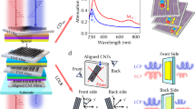 The FDTD simulations were done with Anasys Lumerical software. The dielectric function tensor ϵ of aligned CNT films was from Fig. 3d. When the alignment orientation was rotated, the dielectric function tensor became