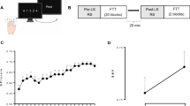 To learn our speed-instructed motor task, subjects needed to keep track of errors using working memory. Some of their errors were self-inflicted (e.g., forgetting the speed instruction) while others were caused by unexpected perturbations. In either case, we found that our subjects learned the task by monitoring their history of errors to decide when to allocate attention using the DAN. Our findings are in agreement with our current knowledge about DAN, specifically for its control of visuospatial attention42. Other studies have found that it activates before and during expected (top-down) as well as after unexpected (bottom-up) visual stimuli43. Therefore, DAN appears to combine bottom-up information (i.e., unexpected perturbations) with top-down information (i.e., self-inflicted errors) when deciding how much attention to allocate for future trials.