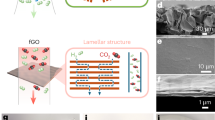 Graphite oxide was obtained using the Hummers’ method and the material was exfoliated into monolayers by short-duration sonication in water (3 minutes under 40 W power). Large monolayers (>10–20 µm) were separated from smaller ones using centrifugation procedures30. The chemical composition of GO layers was investigated using X-ray photoelectron spectroscopy (XPS) with an ESCA 2SR high-throughput X-ray photoelectron spectrometer (Scienta Omicron GmbH). The instrument is equipped with a monochromated Al Kα source (1486.6 eV, 20 mA emission at 300 W), an Argus CU multipurpose hemispherical analyser and an electron flood gun for less conductive samples. All the peaks were calibrated using the C1s photoelectron peak at ∼284.8 eV for graphitic carbon. Spectral deconvolution was performed using CASAXPS (www.casaxps.com) with Shirley-type backgrounds. Supplementary Fig. 1 shows the high-resolution XPS spectra of the C1s region for a lamellar GO film, which indicates a considerable degree of oxidation with five components that correspond to carbon atoms bonded to different oxygen functional groups. These are30,42,43,44: non-oxygenated ring C = C (∼284.8 eV), hydroxyl group C-OH (∼285.6 eV), epoxy group O-C-O (∼286.9 eV), carbonyl C = O (∼287.8) and carboxylate O–C = O (∼288.8 eV). The inset of Supplementary Fig. 1 shows the survey spectrum for the same sample. The spectrum is dominated by carbon and oxygen. Using high-resolution scans of C1s and O1s regions, we have evaluated the C/O ratio as ∼3.5.