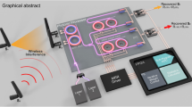 Technological development has driven an ever-increasing demand for wireless communication bandwidth1,2,3. With sub-7 GHz bands heavily utilized, the industry has turned to 30–300 GHz (mmWave) bands to meet these growing needs4,5. At these frequencies, further capacity gains can be realized using beamforming—the angular steering and filtering of radio-frequency (RF) signals to optimize wireless communication links. mmWave beamforming may be implemented using an array of mm-scale antennas in one package3,4,5,6. Hybrid analog-digital beamformers are capable of transmitting or receiving signals at multiple angles simultaneously, allowing independent data streams to be transmitted along different spatial paths concurrently (Fig. 1)3,4,5,7,8. This multiple-input multiple-output (MIMO) approach multiplies the capacity of an RF link3,4,5,6.