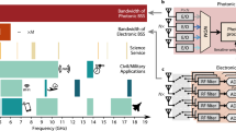 The experimental extension of PBIC to mmWave signals will represent a key direction of future development. We have previously demonstrated PBIC up to 19.2 GHz carrier frequencies27, and recent advancements in integrated silicon photonic components show promise toward fully extending integrated photonics to the mmWave domain45,46,47. Nevertheless, mmWave PBIC has not been shown, and an intermediate downconversion stage prior to electro-optic modulation may be required in the proposed photonic system in order to achieve low-distortion signal recovery.