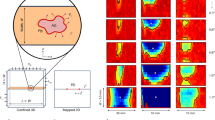 The secondary ruptures occur along the same interface as the first rupture, but the fracture energies, Γi will vary widely as a result of the variation of the intervals, \(\Delta {t}_{i}\), between the initiation of the i – 1 and the ith ruptures. \(A(t)\), hence \({\varGamma }_{i}\) increase approximately logarithmically5,44 with \(\Delta {t}_{i}\). Since σyy is constant throughout each rupture sequence, Γi will scale with the contact drop δAi in the immediate wake of each rupture. Using the i = 1 rupture as a baseline, Γi can be estimated via Γi = Γ1 · (δAi/δA1). The fracture energies of the rupture sequence presented in Fig. 2 are listed in Supplementary Table 1.