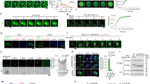 In droplets formation assay, pure EGFP- or AlexaFluor (AF) 488-labeled SARS2-NP demixed into spherical droplets in solutions with proper protein concentration which were not the artefacts of the EGFP tag (Supplementary Fig. 2d, Fig. 2d). Liquid droplets were obviously observed at weak acidic conditions (pH 4.5–7.5, Supplementary Fig. 2d) and low salt concentrations (50–150 mM, Supplementary Fig. 2e). The droplets formation was gradually reduced and finally diminished following pH or salt concentration increases (Supplementary Fig. 2d, e). Meanwhile, the LLPS ability of SARS2-NP was enhanced by RNA (Fig. 2d–f, i, Supplementary Fig. 2d, e). These observations are consistent with previous studies18,21,23. Interestingly, the EGFP-tagged SUMO3-SARS2-NP chimeric proteins formed larger droplets and were more abundant than the droplets formed by EGFP-SARS2-NP WT, without or with RNA (Supplementary Fig. 2d, e). To solidify this observation, we made a new version of SUMO3-SARS2-NP chimeric protein which could be dissociated effectively by TEV protease acting on the cut site in-between (Fig. 2c). As shown in Fig. 2d, dissociation of SUMO3-SARS2-NP resulted in a significant reduction of droplets formation to the level of SARS2-NP formed. Time-lapse microscopy was subsequently utilized to observe LLPS in real time, in which SARS2-NP WT was time-scale increased with the droplet size as expected (Fig. 2e). Strikingly, more rapid, abundant, and larger fusions were observed in SUMO3-SARS2-NP than those in SARS2-NP WT (Fig. 2e). Fluorescence recovery after photobleaching (FRAP) was used to assess the flow activity of SARS2-NP liquid droplets. After selectively bleaching the central part of the droplets, fluorescence recovery was observed within the SARS2-NP droplets, and more efficient diffusion was reflected within the SUMO3-SARS2-NP liquid droplets on a shorter time scale (Fig. 2f). Compared to SARS2-NP WT, SUMO3-SARS2-NP also exhibited a stronger LLPS ability with RNA (Supplementary Fig. 2d, e, Fig. 2d–f). As such, SUMO3 fusion and most likely SUMOylation promote SARS2-NP LLPS without or with RNA.