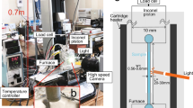 Cores of 25 mm diameter were drilled from the bomb described above. We conducted fragmentation experiments in a shock tube at Ludwig-Maximilians-Universität München according to the methods of Alidibirov and Dingwell51 using argon gas to pressurise core samples in an autoclave to either 10 or 30 MPa, and under room temperature or heated to 850 °C using a split-cylinder furnace. Heated experiments were left at the target temperature for 1 h before fragmentation. The core sample and overlying void space was enclosed using a scored steel diaphragm (diaphragm thickness and score depth empirically determined to rupture at a known differential pressure, always <target pressure), separating it from and overlying smaller volume also sealed with a scored diaphragm. Both volumes are pressurised simultaneously, with the upper chamber pressure at 50% final pressure in the lower chamber. Once final pressure is reached in the lower volume containing the core sample, fragmentation was triggered by a sudden increase in pressure in the upper chamber only, causing the uppermost diaphragm to fail followed by the near-instantaneous rupture of the lower diaphragm. Gas and particles are ejected into a 4 m high by 0.4 m diameter cylindrical tank at room pressure and temperature. After fragmentation experiments, we separated recovered particles into two size fractions: a 63–90 µm-sized fraction, which was reserved for surface and bulk analysis, and particles >1 mm diameter. These larger clasts were wrapped in paper and gently struck with a rock hammer and then sieved to the same 63–90 µm size-fraction to generate material that had undergone the same experimental pressure and temperature conditions but a different fragmentation process. We refer to these two sets of samples as fragmented and crushed samples, respectively.