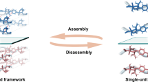 Interestingly, the CD spectra of the aged assemblies (Fig. 2d and Supplementary Fig. 12) revealed that both KLVFFAE and KLVFFAV were left-handed β-sheets in these conditions, suggesting that we had induced the KLVFFAV peptide into a trapped state as compared to the ACN prep. However, after annealing, only the KLVFFAV CD spectra inverted to show a right-handed β-sheet (Fig. 2e). We presume that the combination of reduced hydrophobic interactions and stronger β-sheet interactions in the ACN prep with higher organic solvent content is responsible for allowing the formation of the tubes at room temperature in 40% ACN, while in 10% HFIP, heating is required to overcome the energy barrier of the kinetically-trapped product and enable stable right-handed nucleation51. We further investigated the process of the chirality inversion by monitoring CD during the annealing process (Supplementary Fig. 13); at 85 °C, the β-sheet signal remained left-handed but transitioned to right-handed during the slow cooling process. The slow cooling process was shown to be vital for the chirality inversion and formation of tubes, as a solution that was cooled to room temperature in an unregulated manner remained trapped in the left-handed state and did not form tubes as there was insufficient time to form a right-handed nucleation point (Supplementary Fig. 14). However, we showed that if the β-sheets are already nucleated in the right-handed state, unregulated rapid cooling will allow nanotubes to reform after melting (KLVFFAV in 40% ACN), but if they are left-handed (KLVFFAE, in 40% ACN), they will not reform (Supplementary Figs. 15, 16). As predicted, both solvent and temperature can be used to preferentially direct the nucleation and growth of right- and left-handed β-sheet assemblies.
