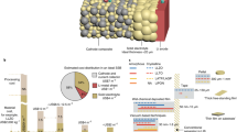 Figure 1a confirms that the relative density of the LPS pellet was well controlled by the fabrication pressure, with an almost fully dense LPS pellet (99.9%) obtained at a fabrication pressure of 700 MPa, consistent with previous results13. Figure 1b presents Nyquist plots from sequential electrochemical impedance spectroscopy (EIS) measurements of the LPS pellet with a density of 95.3% (LPS-95.3%). The real part of the impedance increases for the initial 2 h, before leveling off for the remaining 10 h, behavior consistent with a chemical reaction between LPS and Li metal24 and early passivation of the solid-electrolyte interphase (SEI)15,25. Figure 1c clearly shows the strong effect of the pellet density on the bulk (SE + SEI) resistance and its temporal evolution as well as passivation of all the cells during the initial 2 h. As depicted in Fig. 1d, the ionic conductivity linearly increases with increasing LPS density, and the initial overpotential decreases12. The increase in conductivity is likely related to the increase in contact area between the LPS particles at higher density.
