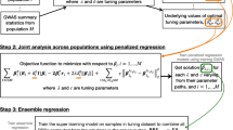 where p is the total number of SNPs, and \(I\left(\bullet \right)\) is the indicator function. Under this model, \({\beta }_{A,j},{\beta }_{B,j}\) are the population A, B specific effect of SNP j on the phenotype. We note that with no local ancestry information, and ignoring haplotype information, this model collapses to the standard additive model.