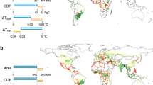 Anthropogenic forcing caused warming of 0.9–1.3 °C during 2010–2019 relative to the preindustrial period1, revealing the scale of the growing challenge in meeting the 1.5 or 2 °C warming climate goals specified in the Paris Agreement2,3. To achieve the stated climate goals, mitigation strategies increasingly rely on negative emission technologies (NETs) that can remove CO2 from the atmosphere4. For example, for China to reach carbon neutrality, NETs are expected to provide negative emissions of 0.01–2.91 billion tons of CO2 per year (GtCO2 yr−1) between 2050 and 2060, according to climate mitigation scenarios based on leading integrated assessment models (IAMs)5,6,7,8. In addition to the carbon sinks of reforestation and afforestation, these scenarios suggest that such high NET demands rely mostly on bioenergy with carbon capture and storage (BECCS) or direct air carbon capture and storage (DACCS)9. However, both BECCS and DACCS have financial and technological obstacles that must be overcome before they can be implemented on a broad scale10,11. Specifically, NET costs (levelized cost per ton of CO2 removed) can exceed US$100 per ton of CO2 ($ t−1CO2) for BECCS and 200 $ t−1CO2 for DACCS12,13,14, while resource and geological constraints further limit their deployment15. Moreover, BECCS competes with crop production for both land and water, thereby potentially compromising other sustainable development goals such as food security16. Therefore, prior to addressing the major barriers confronting mentioned NETs, alternative solutions are urgently needed to form a feasible NET portfolio capable of achieving climate targets safely and sustainably17.