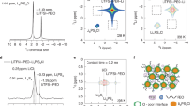 7Li solid-state magic angle spinning nuclear magnetic resonance (ssMAS NMR) spectra were collected to study the local Li+ ion environment in the Li-CuMH before and after cycling (Fig. S33). For the cycled Li-CuMH SSE, the 7Li full-width at half-maximum (FWHW) decreases compared with the pristine Li-CuMH SSE, indicating an enhanced Li+ ion mobility60. Moreover, the 7Li resonance of the pristine Li-CuMH is 1.60 ppm and shifts upfield after cycling, representing a change in the polarization environment of the Li+ ions in the Li-CuMH. This change usually indicates a strong interaction between Li+ ions and polar groups in the Li-CuMH SSE, which enhances the ionic conductivity61,62. Flammability tests were further performed to confirm the safety of the Li-CuMH SSE. As shown in Fig. 4f, the Li-CuMH SSE is absolutely flame retardant, while the glass fiber carrying the liquid electrolyte is easy to ignite. Undoubtedly, the flame-retardant properties of SSEs based on hydrated coordination compounds will greatly expand their application potential.