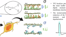 Equation 3 assumes that Vs remains unaltered during photoswitching. The condition is undoubtedly fulfilled in a planar lipid bilayer (PLB) with symmetrical leaflets, since Vs ≈ 0 mV. For the plasma membrane of E. coli with Vs = −18 mV31, a 5% change in the area per lipid would alter Vs by no more than 1 mV, which is negligible.