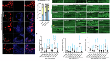 For immunostaining of fly thorax and brain tissues, flies were anesthetized using CO2-enriched air, and thorax or brain tissues were dissected and fixed in 4% paraformaldehyde containing 0.3% Triton X-100 at 4 °C overnight. The thoraces were subdivided into small chunks. The brain was dissected from the head cuticle, with the surrounding trachea carefully removed. Samples were permeabilized with 0.5% Triton X-100 in PBS for 45 min before blocking.