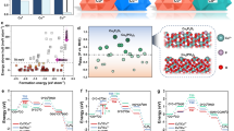 We took the view that hydroxide ions on or near the copper surface can lower the CO2 activation energy barrier and facilitate CO adsorption near the OH moiety23,24,25. Introducing OHˉ in a Cu precatalyst has also been shown to promote the growth of Cu(100)26, yet rapid OHˉ loss from the Cu surface via electroreduction results in a surface with Cu(100) and Cu(111) facets in similar proportion. We posited that the buildup of stable CO and OHˉ (CO&OHˉ) on Cu could promote the in situ synthesis of Cu(100)-rich catalysts compatible with efficient CO2 electrolysis to multicarbon products (Fig. 1b).