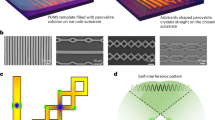 Over the past decade, an emerging class of direct bandgap semiconductor materials, known as lead halide perovskites, has gained widespread attention in the fields of light-emitting diodes14,15,16, solar cells17,18,19, and lasers20,21,22,23,24, owing to their exceptional optoelectronic properties25,26. These properties include high photoluminescence (PL) quantum yield, low defect state concentration, long charge-diffusion length, and broad wavelength tunability. Moreover, monocrystalline perovskite microstructures featuring regular and sharp morphology have demonstrated remarkable laser and waveguide performance27,28,29,30,31,32. Given these advantages, perovskite semiconductors represent a promising platform for realizing micro-nano light sources and photonic devices at room temperature. Numerous strategies have been proposed for the micro-nano patterned fabrication process of single-crystal perovskite; however, research on active multifunctional integrated photonic devices and circuits remains limited33,34,35,36,37,38. Therefore, by combining the outstanding optoelectronic properties of perovskites with state-of-the-art micro-nano surface patterning technology, perovskite-based active integrated photonic devices may offer a promising path towards the further development of integrated photonic chips, integrated optical quantum devices, and quantum computing.