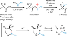 A robust and modular approach to obtain all-alkyl α,α-disubstituted α-amino esters has been recently described by the group of Gaunt29. In this approach, a carbonyl alkylative amination reaction was initiated via blue light and a silane reagent which combined primary amines, α-ketoesters, and alkyl iodides in a single reaction. First, in situ condensation between the primary amine and α-ketoester was mediated by a Brønsted acid and formed the ketiminium species, which subsequently underwent rapid 1,2-addition of an alkyl radical to generate the corresponding aminium radical cation. The desired product was finally afforded from the electrophilic aminium radical cation, formed by a hydrogen atom transfer (HAT) process from electron-rich silane. This facile approach featured broad substrate scope with all the three components and generated impressive structurally diverse products (Fig. 5b). Another visible light approach was reported by the group of Gong. In this case, the selective C(sp3)-H functionalization also proceeded through a HAT process. By adding a bisoxazoline-based (BOX) catalyst, the cross-coupling between the alkyl radical with imines enabled the desirable α,α-disubstituted α-AAs80. Very recently, alkyl radicals formed via an HAT step have also been reported to undergo radical addition to imines to for the α,α-disubstituted α-AAs81. Overall, these advances via addition at ketimines provided more structural diversity of afforded α,α-disubstituted α-AAs through reaction with previously challenging reagents such as styrenes and allenes. Moreover, during the preparation of our manuscript, another extensive review about the catalytic enantioselective reactions of ketimine-type α-iminoesters/α-iminoamides to access unnatural α-AAs was published82.