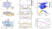 Single crystals of Tb166 were grown from excess Sn using the flux method as previously described22. INS measurements were performed on the Wide Angular-Range Chopper Spectrometer (ARCS) at the Spallation Neutron Source at Oak Ridge National Laboratory. An array of nine crystals with a total mass of 2.56 grams was co-aligned with the (H,0,L) scattering plane set horizontally, and attached to the cold head of a closed-cycle-refrigerator. The data were collected at the base temperature of 5 K and 400 K using incident energies of Ei = 250 and 500 meV. For each Ei measurement, the sample was rotated around the vertical axis to increase the q coverage. The neutron scattering data are described using the momentum transfer in hexagonal reciprocal lattice units, \({{{{{{{\bf{q}}}}}}}}(H,K,L)=\frac{2\pi }{a}\frac{2}{\sqrt{3}}(H{{\hat a}{*}}+K{{\hat b}{*}})+\frac{2\pi }{c}L\hat{z}\). The INS data are presented in terms of the orthogonal vectors (1, 0, 0) and ( − 1, 2, 0), as shown in Fig. 1b. We describe the data with reference to special points in the 2D Brillouin zone; Γ–(0,0), M–\(\left(\frac{1}{2},0\right)\), and K–\(\left(\frac{1}{3}\right.\),\(\left.\frac{1}{3}\right)\). The INS data are displayed as intensities that are proportional to the spin-spin correlation function S(q, E), where E is the energy. To improve statistics, the data have been symmetrized with respect to the crystallographic space group P6/mmm.