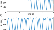 Figure 1 a is a plot of the expected secret key rates versus channel loss in the 4D protocols. The secret key rate is evaluated based on the experimental parameters of Table 129, where \({{{{{{{{\rm{QBER}}}}}}}}}_{{{{{{{{{\mathcal{Z}}}}}}}}}_{{\mu }_{n}}}\) and \({{{{{{{{\rm{QBER}}}}}}}}}_{{{{{{{{{\mathcal{X}}}}}}}}}_{{\mu }_{n}}}\) are the quantum bit-error rates measured for the \({{{{{{{\mathcal{Z}}}}}}}}\) and \({{{{{{{\mathcal{X}}}}}}}}\) bases, respectively, and for an average photon number μn (n = 1, 2), and pgate is the probability that a photon falls within the photodetection temporal gate. The values of \({p}_{{\mu }_{1}}\) and \({p}_{{\mu }_{2}}\), as well as those of \({P}_{{{{{{{{\mathcal{Z}}}}}}}}}\) and \({P}_{{{{{{{{\mathcal{X}}}}}}}}}\) resulted from the maximization of the secret key rate. Note that although the Hi-D protocols provide higher resilience against errors, the final achievable range is shorter, and the SKR drops to zero at lower channel losses. The reason for this behavior must be found in the fact that a higher-dimensional system uses more detectors (or more active time of a detector in hybrid time-bin protocols) than a protocol with a lower dimension, and this results in higher dark count rates and lower signal-to-noise ratio, see Supplementary Note 1. At the channel loss of 22 dB the secret key rate of the 4D protocol was estimated to be 51.5 kbps. The stability of the QKD implementation is illustrated in Fig. 1b, where we plot the QBER measured in the \({{{{{{{\mathcal{Z}}}}}}}}\) and \({{{{{{{\mathcal{X}}}}}}}}\) bases in a time window of 60 minutes. The figure shows greater stability in the \({{{{{{{\mathcal{Z}}}}}}}}\) basis, which indicates that the relative phase between pulses propagating in the different fiber cores is sufficiently stable to guarantee long-term operation. On the other hand, the relative phase between pulses propagating in the same fiber core is expected to be at least as stable. In fact, the large QBER values observed in the \({{{{{{{\mathcal{X}}}}}}}}\) basis are to be ascribed to mechanical vibrations present in the environment and affecting the fiber-based interferometer used for receiving \({{{{{{{\mathcal{X}}}}}}}}\)-states. Note that these QBER spikes are absent in controlled laboratory environments30 and can be improved by acting on the receiver setup (improved isolation). On the other hand, the Z-basis phase which corresponds to the full multicore fiber interferometer, was intact as it was only influenced by the natural phase drift in the fiber. We compared the 4D implementation with a 2D path-encoded implementation in the same setup. The results of this comparison are presented in Supplementary Note 1.