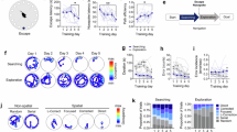 Comparisons between 2 dependent groups (e.g., left and right trials or data and shuffled datasets from the same animal) were made with two-sided paired t-tests (for normally distributed data, assessed by a Shapiro–Wilk test) or Wilcoxon signed-rank tests (for data that did not follow a normal distribution). For comparisons of independent data, unpaired two-sided t-tests were used for normally distributed data, and Mann–Whitney U-test for data that did not follow a normal distribution. For comparisons of multiple time points with a single group (e.g., behavioral performance over days), one-way repeated measures ANOVA was used. To compare time series of two groups (e.g., spatial correlation to day 1 for data and shuffled controls), two-way repeated measures ANOVA was used. Pairwise comparisons commenced for each time point using paired t-tests with Šidák correction. Unless indicated otherwise, statistics were based on averages per mouse. Statistical tests were computed using Python’s stats and pingouin49 packages. Data are expressed as mean ± sem.